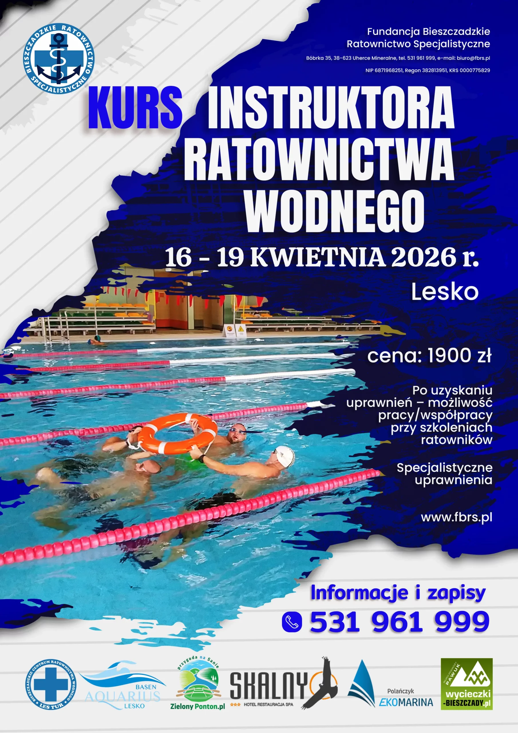Kurs Instruktora Sportu specjalność pływanie Lesko 24 kwietnia – 10 maja 2026 r.